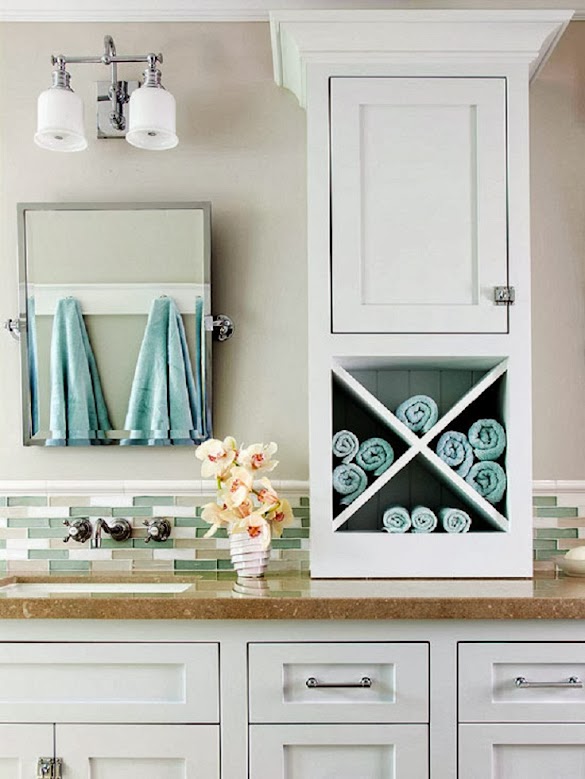 Tiny Bathroom Storage Ideas - Big Ideas for Small Bathroom Storage | DIY / Arrange neatly the towels and other ornaments for an interesting storage idea.. Keep a basket near the toilet, under the sink, or in the closet to make use of tight space. Strategically place some around the bathroom to keep products and accessories organized. Having a small bathroom means you will have to find some inspiration for building some storage inside of it. Place it on one of the bathroom walls to save space and give a neat impression. Reusable crate shelves will provide an inexpensive and inexpensive small bathroom decor.